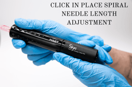Internal click spiral needle length mechanism efficiently secures needle position when making adjustments